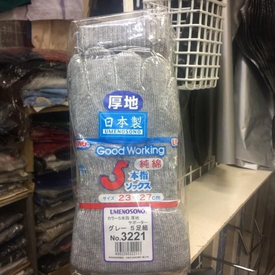柴垣商店 3221 国産5本指サポーター グレー 厚地 5P ※メーカー取り寄せ(3営業日内出荷)