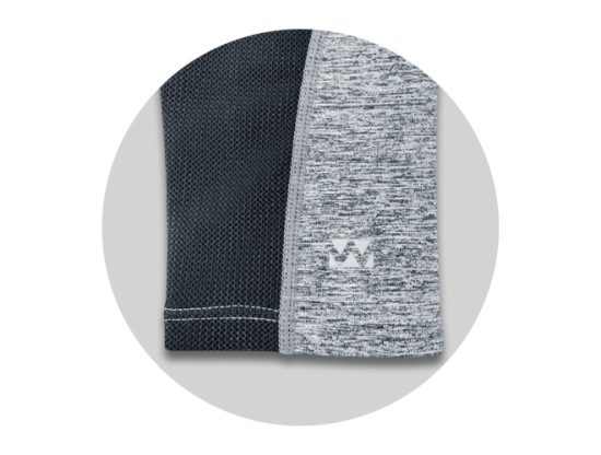 伸縮性のあるベア天竺裏起毛素材のアンダーレイヤー。コーヒー炭が遠赤外線効果を発揮。